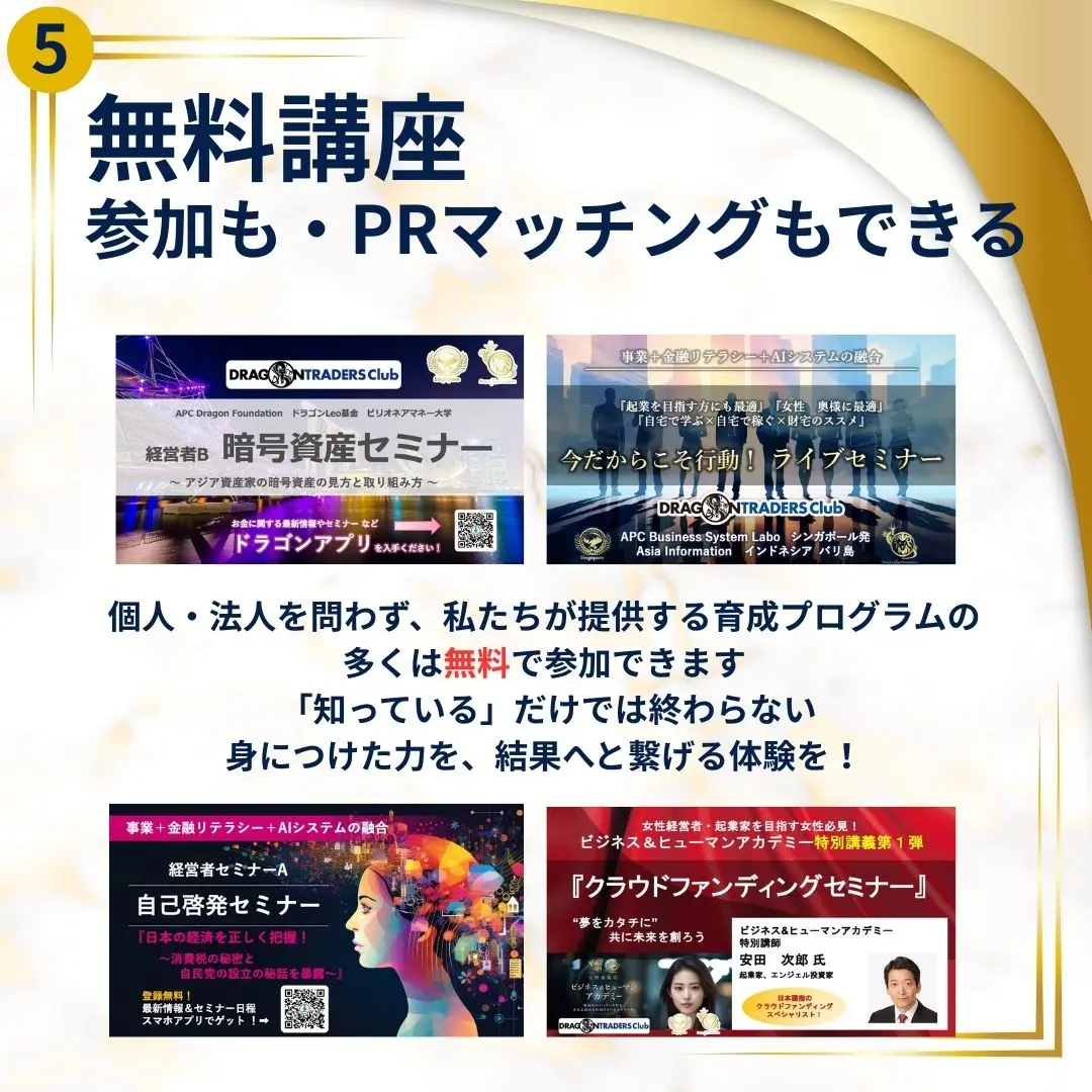 (4-1) DRAGONに入会すると、同月からDRAGON本部より情報配信が行われ、各種セミナーへの参加できます。